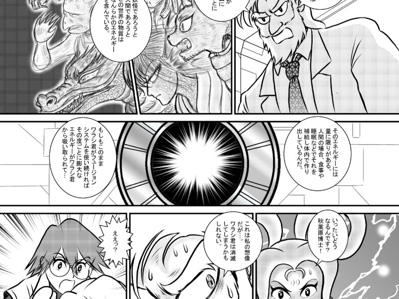 ロボットに妖怪が融合できる「フュージョンシステム」。座敷ワラシの長 わらしは悪のメタル妖怪たちと戦うために、秋葉原博士の作ったメタル妖怪わらしにフュージョンして戦う